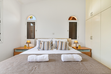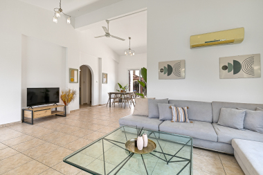 A selection of 2 Large double bedrooms and a Fully equipped Kitchen. Comfortable 2 bathrooms with fresh clean towels provided. Comfy living area, large sofa, dining table, flat screen smart TV and a gaming console with Free Wi-Fi around the villa, providing you the great holiday home with a premium experience.