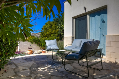 A 3 Bedroom Villa with 2 Bathrooms. A Communal pool with private garden and comfortable outdoor furniture's for relaxing time. A selection of 3 Large bedrooms and a Fully equipped Kitchen. Comfortable 2 bathrooms with fresh clean towels provided. Comfy living area, large sofa, dining table, flat screen smart TV and a gaming console with Free Wi-Fi around the villa, providing you the great holiday home with a premium experience in the quiet area of Peyia Free private parking is available on site.