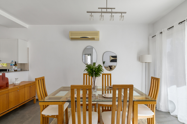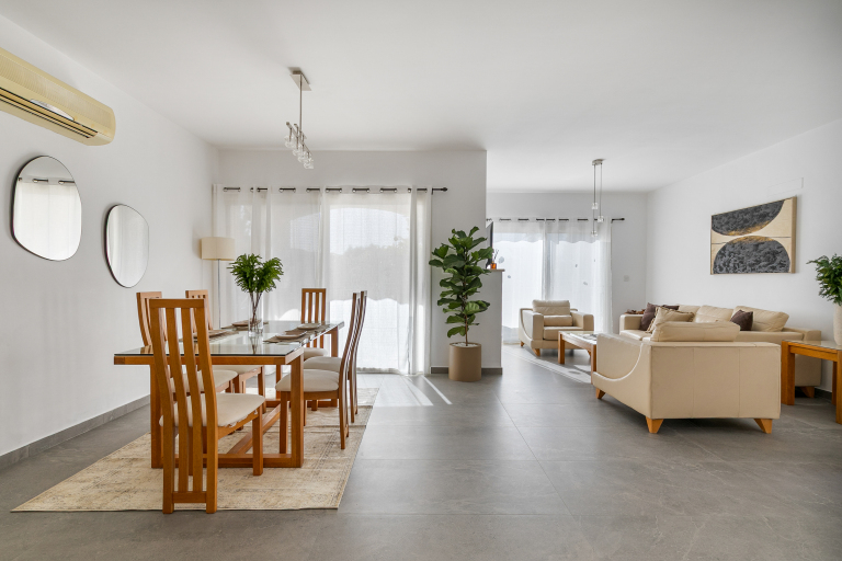A selection of 3 Large bedrooms and a Fully equipped Kitchen. Comfortable 2 bathrooms with fresh clean towels provided. Comfy living area, large sofa, dining table, flat screen smart TV and a gaming console with Free Wi-Fi around the villa, providing you the great holiday home with a premium experience in the quiet area of Peyia