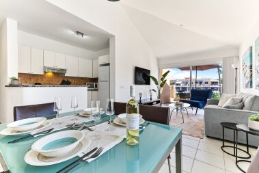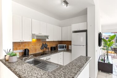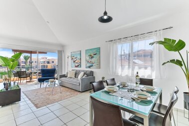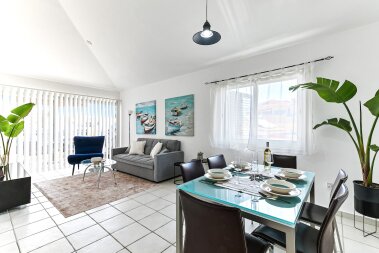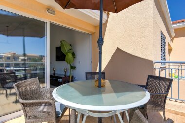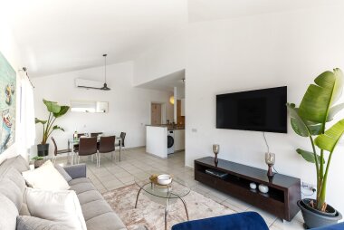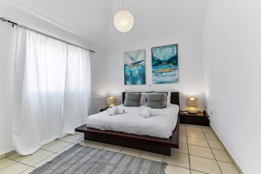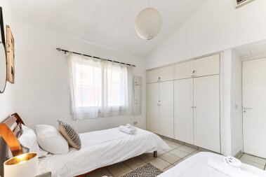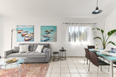 A beautiful 2-bedroom apartment in the prestigious Limnaria Gardens complex in the Kato Paphos neighbourhood. The complex has 3 free of charge swimming pools for our guests to use: a pool for little ones, a medium pool for children and a large pool for everyone. The complex is only a 400 m walk from a sandy beach, close to many restaurants, cafes, convenience stores, pharmacies and everything you need for a perfect vacation! The apartment is suitable for up to 6 guests.