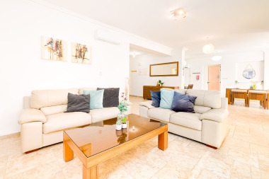 A selection of 4 Large double bedrooms and a Fully equipped Kitchen. Comfortable 4 bathrooms with fresh clean towels provided. Comfy living area, large sofa, dining table, flat screen smart TV with Free Wi-Fi around the villa, providing you the great holiday home with a premium experience.